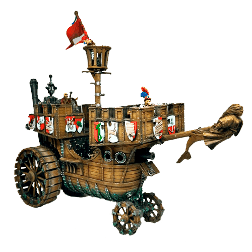 Marienburg class Land Ship – Marienburg Landship (Very Rare) – The land ships were dispatched with a strong cavalry escort of Outriders to engage the mighty war machines of the Chaos Dwarfs and a brutal melee ensued between the two forces. Although only a single vessel survived the firestorm of battle, they and the mounted engineers destroyed many of the enemy machines and left them in no condition to aid the main horde. Weapons and Equipment – The deck crew are armed with a variety of Handguns, Pistols and Sweepers to use whilst also piloting the vessel. The vessel is huge and well protected, but the boiler is large enough to a great danger to those who crew it if anything goes wrong or it suffers damage in battle.