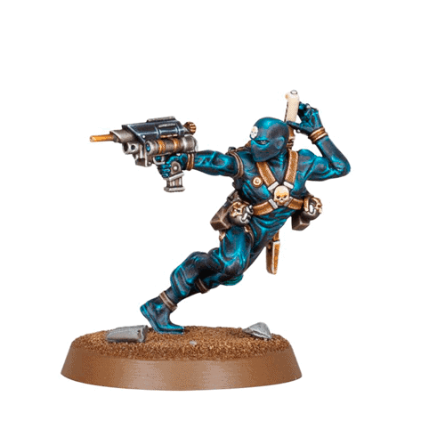 Clade Adamus Assassin – Perhaps the oldest order of Assassins that operate with Imperial sanction, the Clade Adamus draws its roots from the forbidden blade-master traditions of the Panpacific Terran region. To practice the ways of the Clade Adamus is to study the enemy, to learn their martial language, and to reflect it against them, countering their strengths and revealing their weaknesses. When the lesson is complete, the killing blow is struck. Though its history is shrouded by the losses of the Dark Age of Technology, scholars have posited that name of the Clade Adamus stems from an ancient theologic provenance, meaningĀ the first blades. This kit comprises 9 resin components, and is supplied with a Citadel 32mm Round Base.