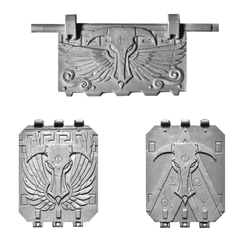 Minotaurs Land Raider Doors – A mysterious and darkly famed Chapter, the Minotaurs played a major part in the prosecution of the Badab War. Adding their full strength to the loyalist cause, they were most lauded for their brutal and unrelenting near-destruction of the secessionist Lamenters during the Battle of Optera. Three finely detailed resin replacement doors for the Land Raider tank kit depicting Minotaurs iconography.