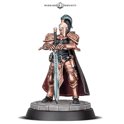 Adeptus Custodes Aleya – Aleya is a veteran of the Sisters of Silence, those charged with seeking aberrant witches and dangerous psykers for destruction. A ferocious fighter and hunter, she wields a relic weapon, the blade marked ‘Somnus’ in honour of the first temple of the Sisterhood on Luna.