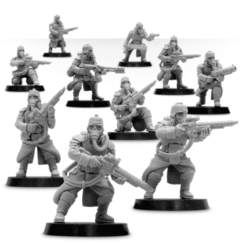 Death Korps of Krieg Grenadier Squad – 10 man resin multi-part Death Korps of Krieg Grenadier squad with Sergeant, Flamer and Grenade Launcher.